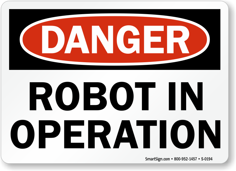 Make safety a priority, and prevent accidents. Use a "robot in operation" sign.
