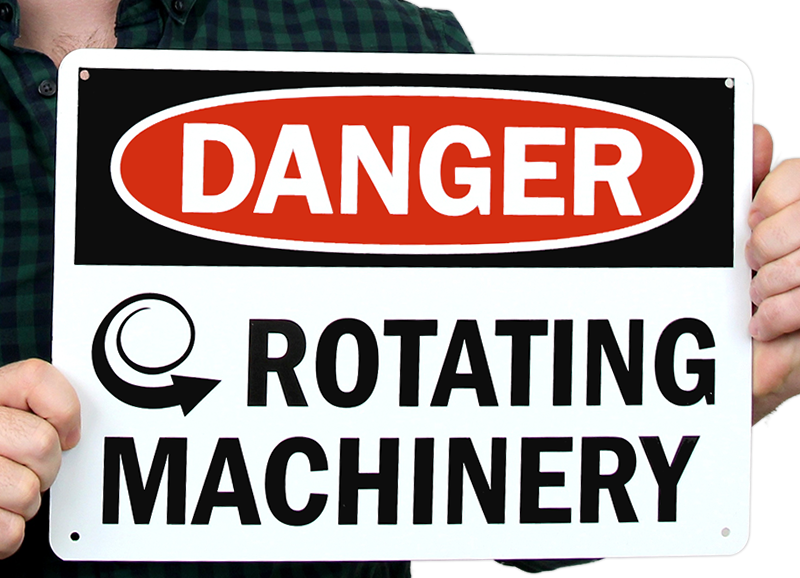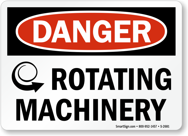 Post this rotating machinery sign to remind everyone to watch out for dangerous machinery.