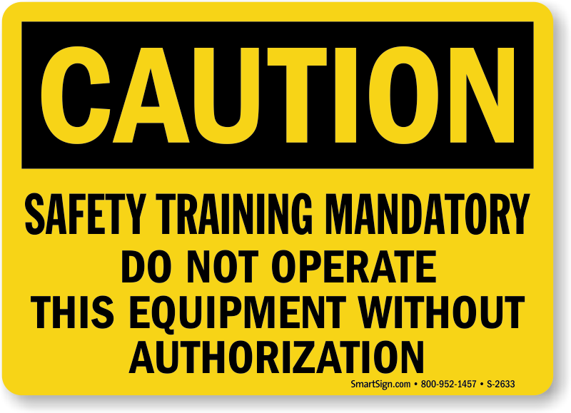 Use a "safety training mandatory do not operate this equipment without authorization" sign.
