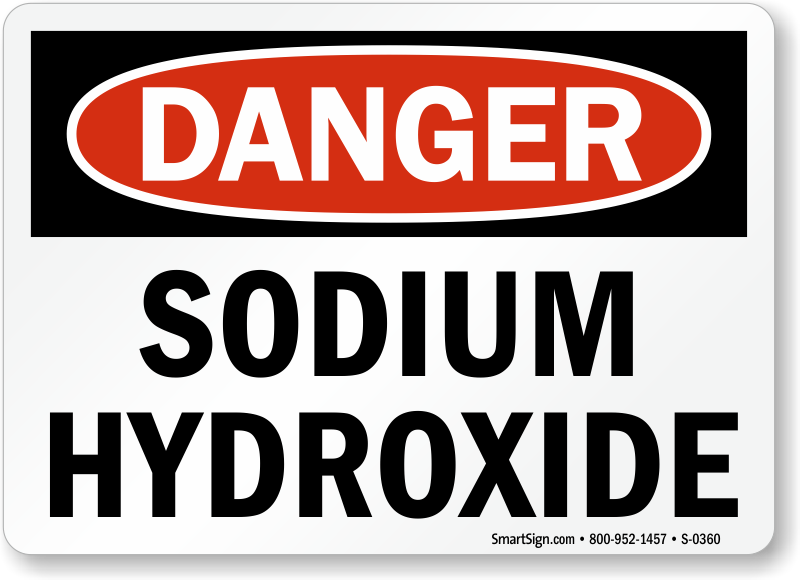 Chemicals are dangerous. Use a "sodium hydroxide" sign. A sign emphasizes your attention to safety.