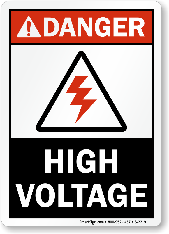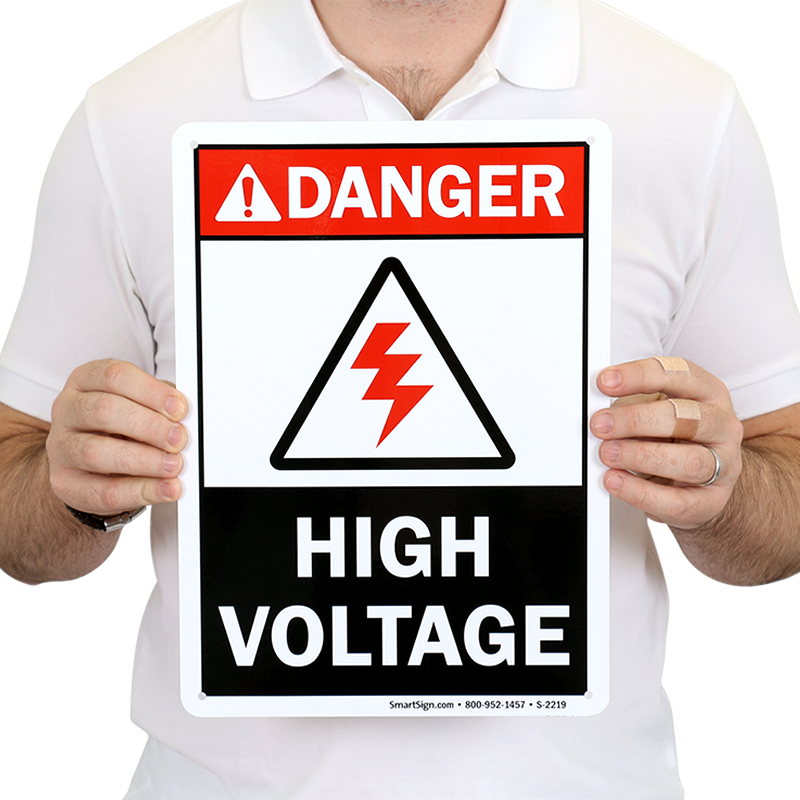 Avoid shock (and awe) with this bold high voltage sign. Include centered graphic to highlight dangerous conditions.
