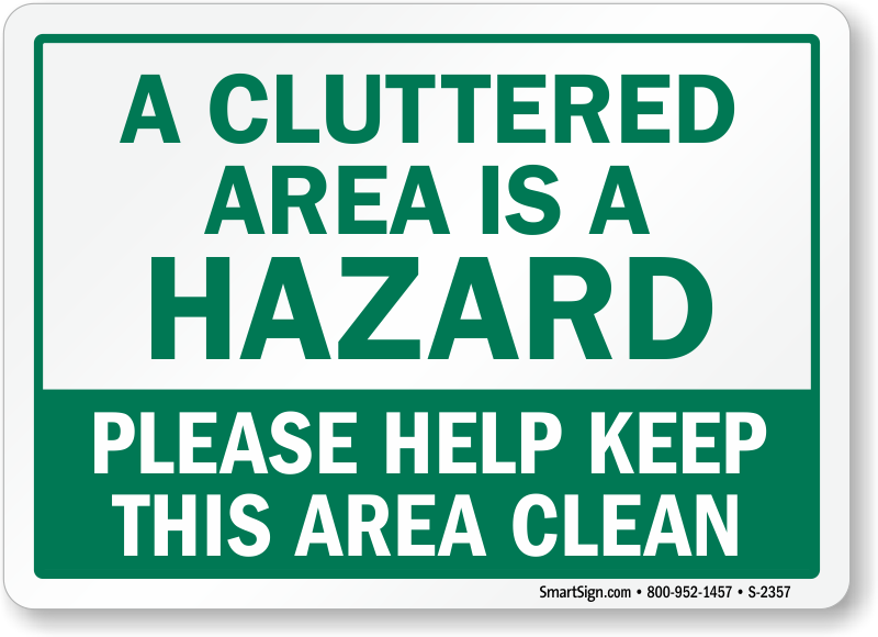 Avoid accidents before they happen. Keep your employees safe by installing this sign telling them to keep their area clutter-free.