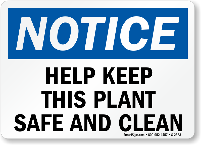 Safety is related to cleanliness. A clean building is a safe building. Instill this kind of thinking in your employees with this bold Notice sign.