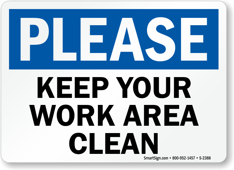Everyone has to help keep the workspace clean. Use a "please keep your work area clean" sign. Guard against dirt and clutter.