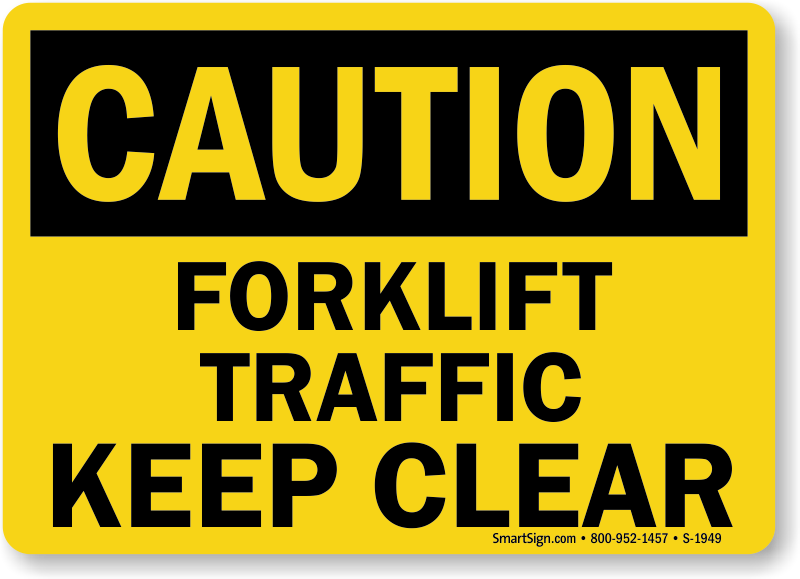 Use a "forklift traffic keep clear" sign. Supply necessary information.