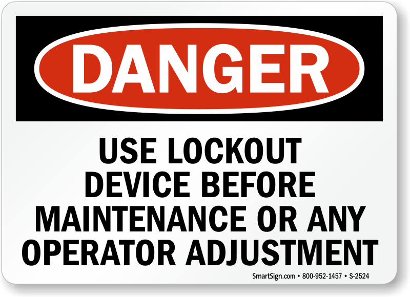 OSHA Danger Sign: Use Lockout Device Before Maintenance Or Any Operator Adjustment