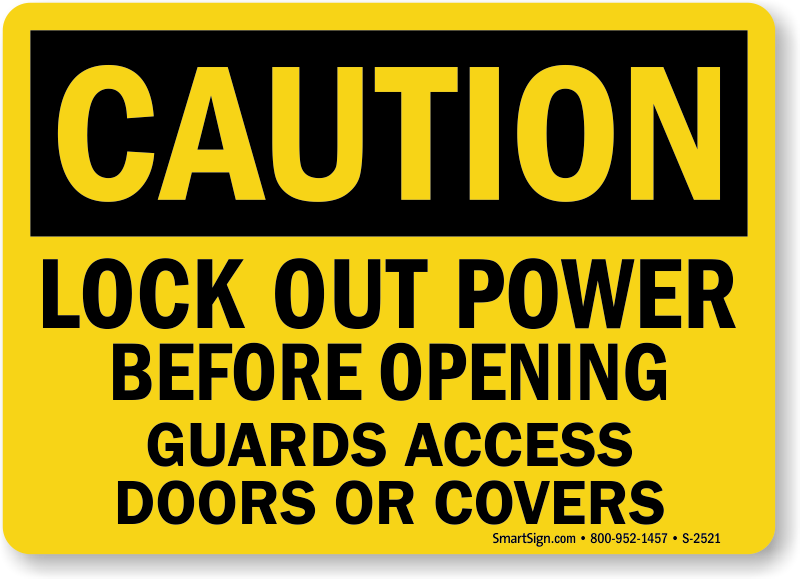 OSHA Caution Sign: Lock Out Power Before Opening Guards Access Doors Or Covers S-2521