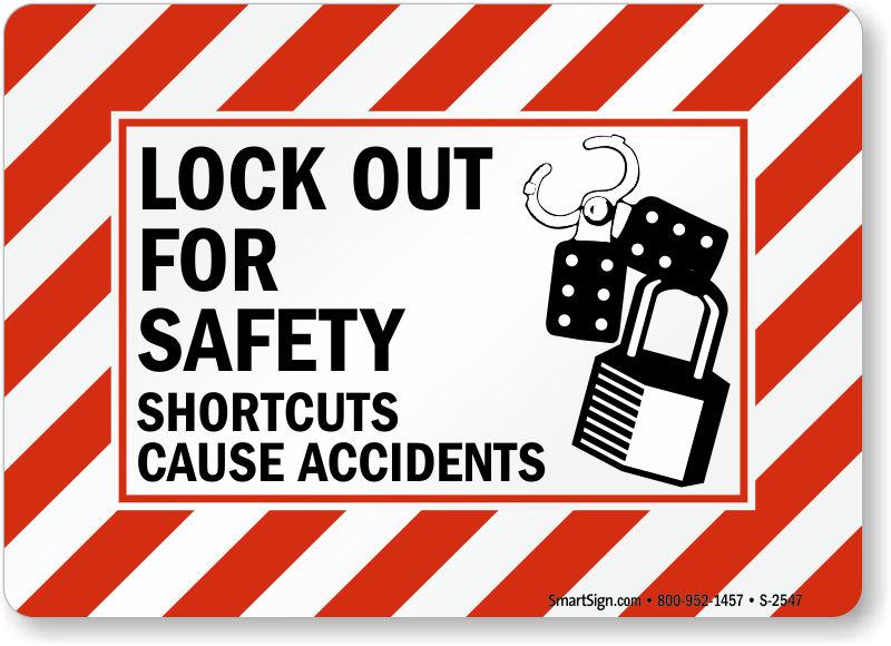 Use a "lock out for safety shortcuts cause accidents (with graphic)" sign.