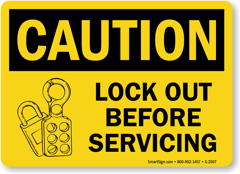In case of hazardous equipments, install this OSHA Caution Sign so that workers are informed to lock out equipment before servicing.