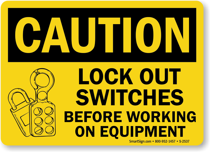 OSHA Caution Sign: Lockout Switches Before Working On Equipment