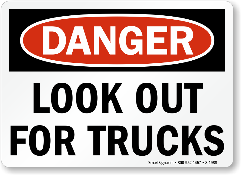 This sign on a roadside alerts pedestrians and smaller vehicles to look out for trucks.