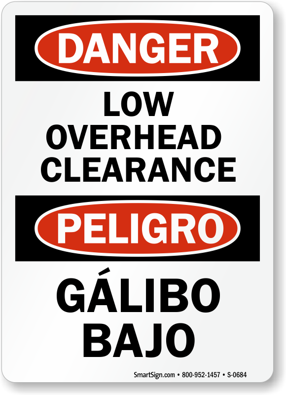 Keep everyone informed of the hazard. Use this bilingual Low Overhead Clearance sign to make sure everybody knows of the danger.