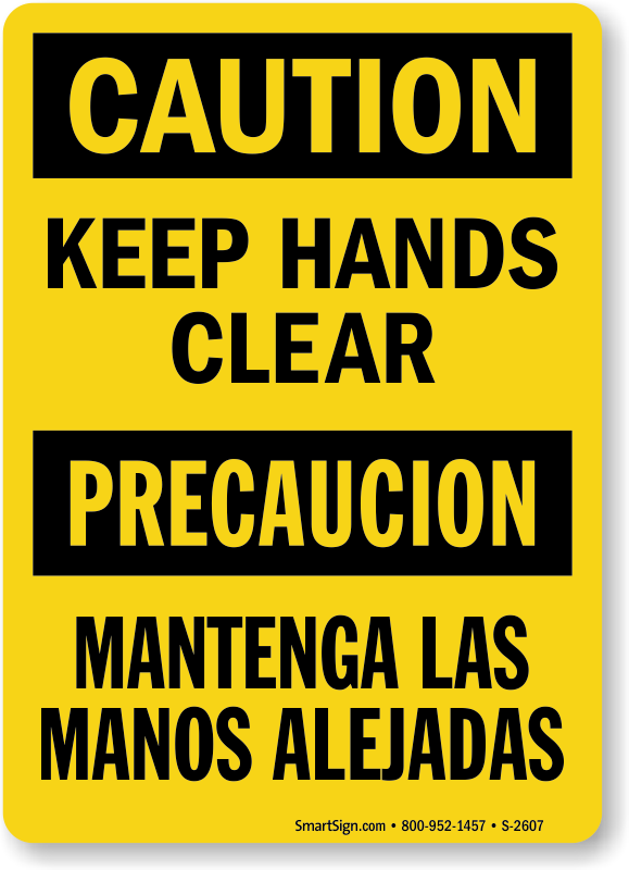 Bilingual OSHA Caution / Precaucion Sign: Keep Hands Clear / Mantenga Las Manos Alejadas