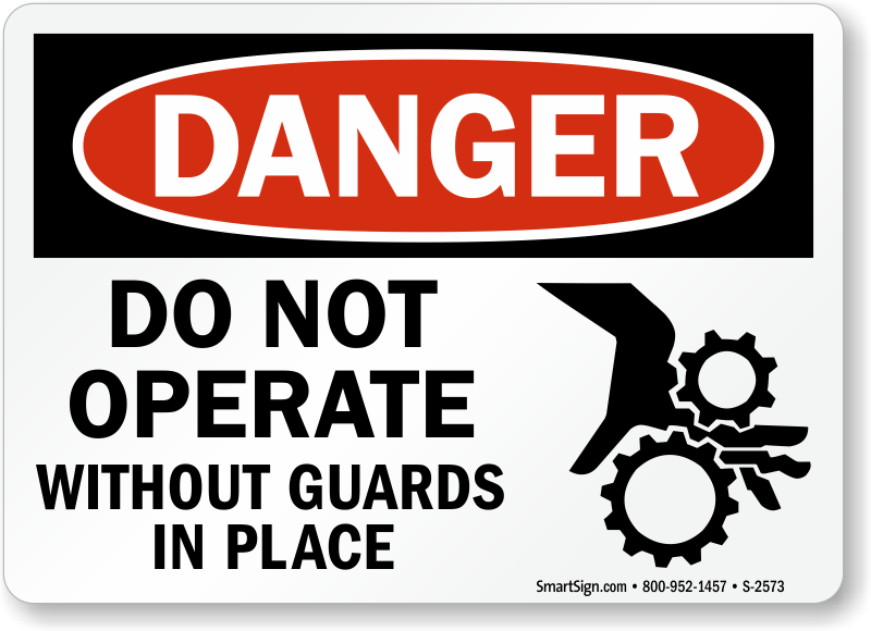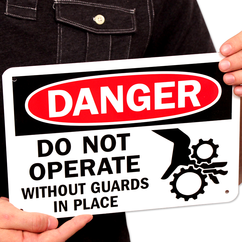 Post this OSHA Danger Sign to instruct workers that operating the equipment without guards can be hazardous. Clear pinch point symbol effectively communicates your message. High durability materials ensure that our products lasts for several years, both indoors and outside.
