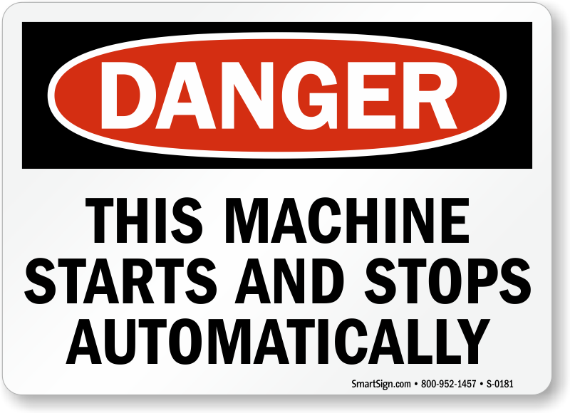 Information prevents accidents. Post the necessary warning. Use a "this machine starts and stops automatically" sign.