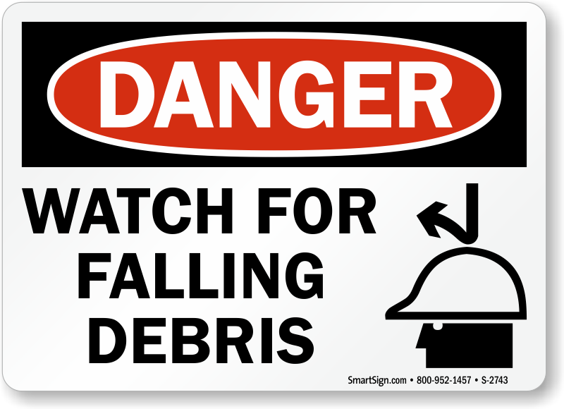 Use a "watch for falling debris (with graphic)" sign. Signs work - they guard against forgetfulness.