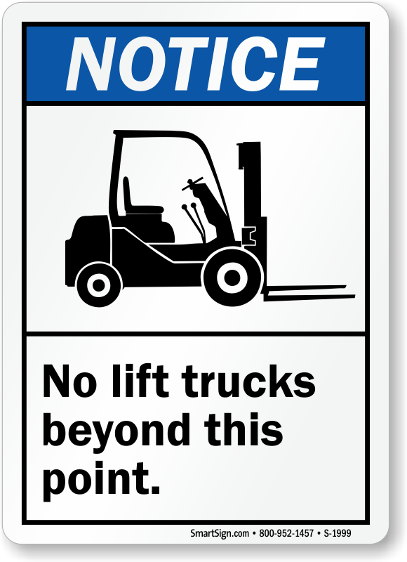 ANSI Notice Sign: No Lift Trucks Beyond This Point