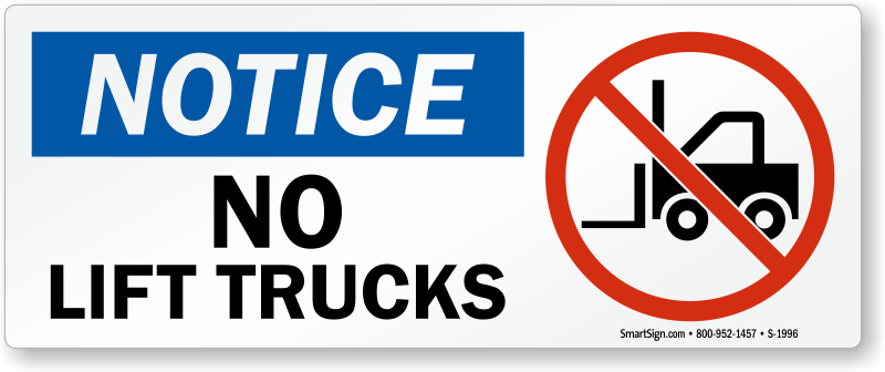 OSHA Notice Sign: No Lift Trucks (With Prohibition Symbol) Learn More...