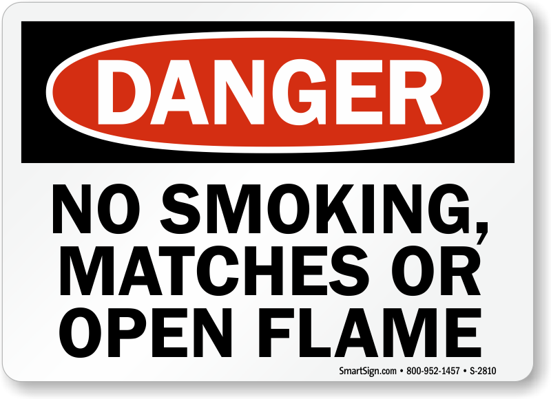 A "no smoking, matches or open flame" sign will help ensure safety of your employees and visitors.