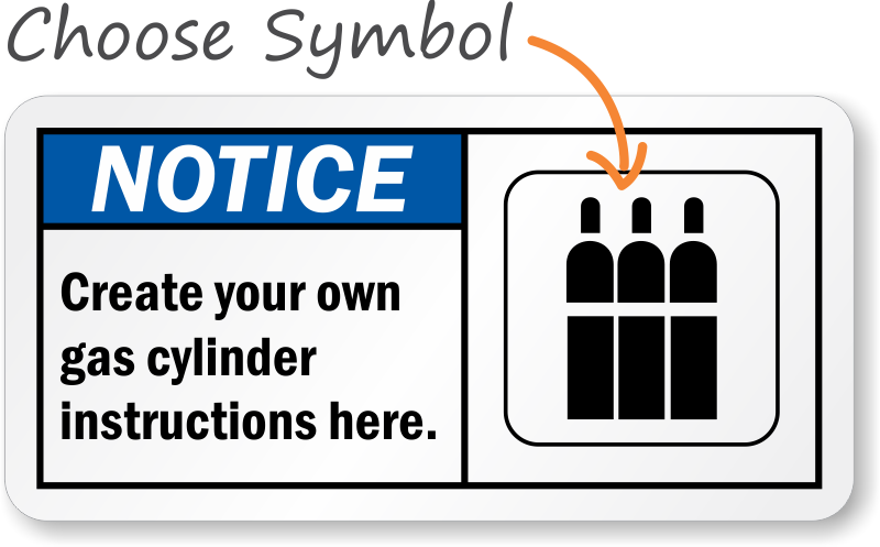 Use a "notice (ANSI):create your own gas cylinder instructions here." sign.