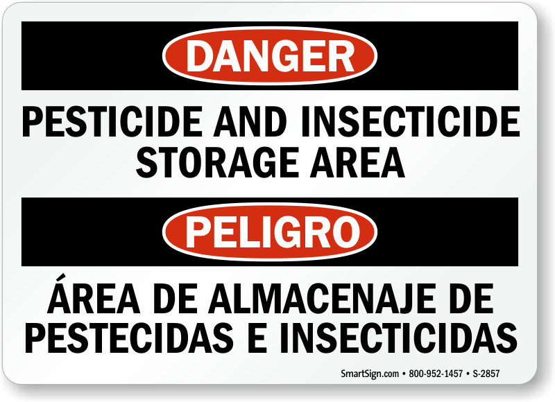 Bilingual OSHA Danger Sign: Pesticide and Insecticide Storage Area S-2857