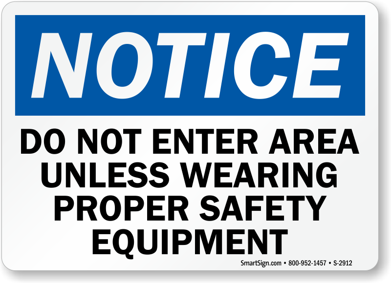 Use a "do not enter area unless wearing proper safety equipment" sign. Designed to be effective.