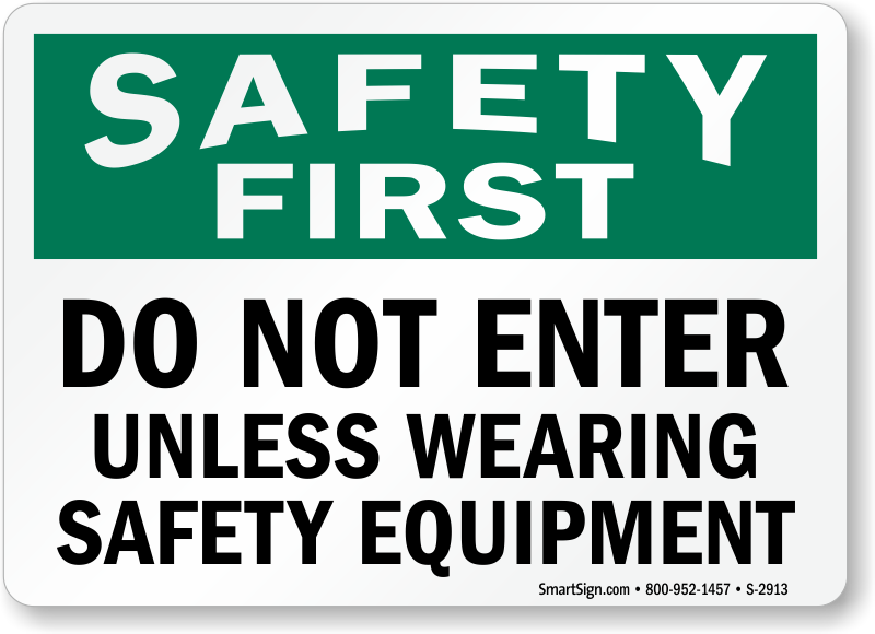 Use a "do not enter unless wearing safety equipment" sign. Make your point in an easy an consistent way.