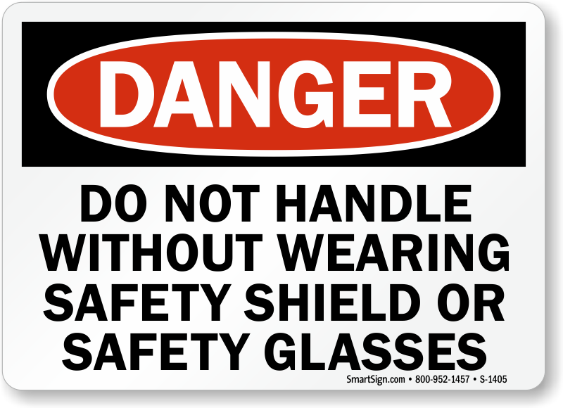 Use a "do not handle without wearing safety shield or safety glasses" sign.