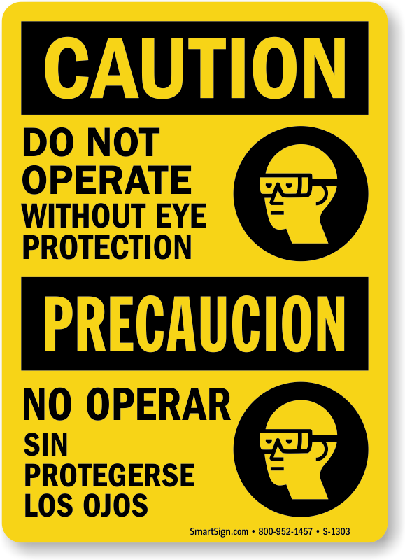 Bilingual OSHA Caution Sign: Do Not Operate Without Eye Protection (with Graphic) (Bilingual)