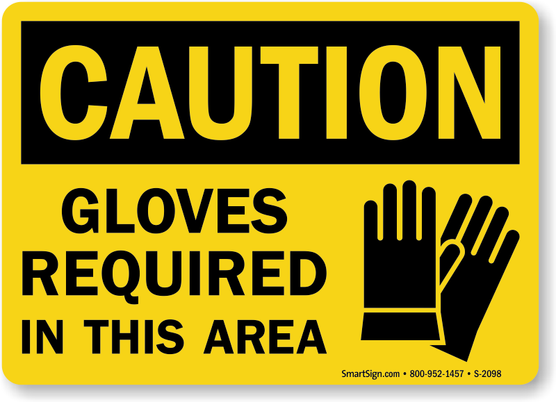 OSHA Caution Sign: Gloves Required In This Area (with Graphic)