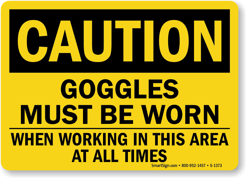 Use a "goggles must be worn when working in this area at all times" sign.