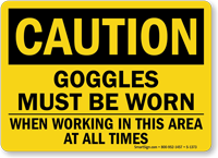 OSHA Caution Sign: Goggles Must Be Worn When Working In This Area At All Times S-1373