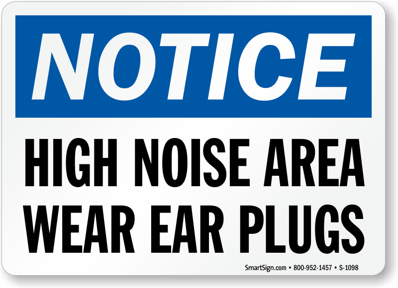 Use a "high noise area wear ear plugs" sign. Proven to work.