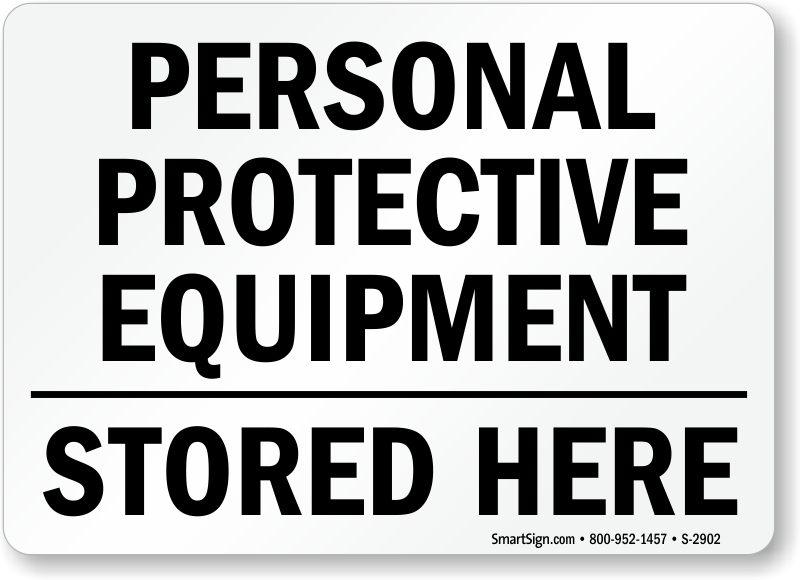 Remind everyone to wear their safety equipment. Use a "personal protective equipment stored here" sign.