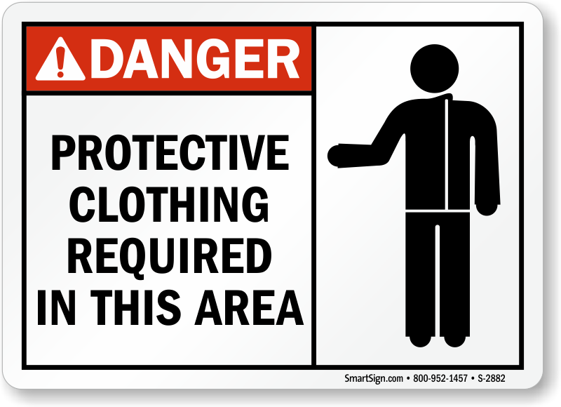 Danger Sign: Protective Clothing Required In This Area (with graphic)