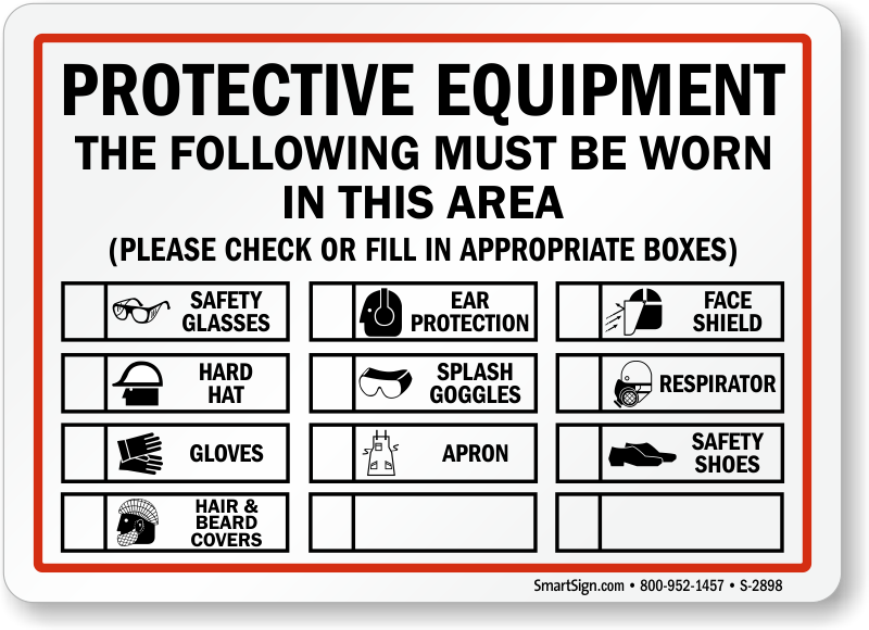 Protective equipment saves lives. Use a "protective equipment" sign. Remind everyone.