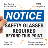 OSHA requires employers to ensure that workers wear appropriate PPE where required. Post this notice sign asking workers to wear safety glasses in order to stay protected against hazards during their work operations.