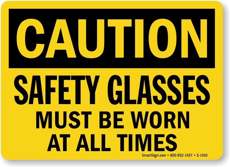 For a clear safety policy, using a "safety glasses must be worn at all times" sign is important.