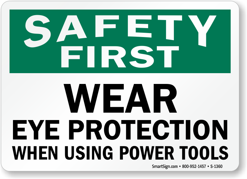 OSHA Safety First Sign: Wear Eye Protection When Using Power Tools