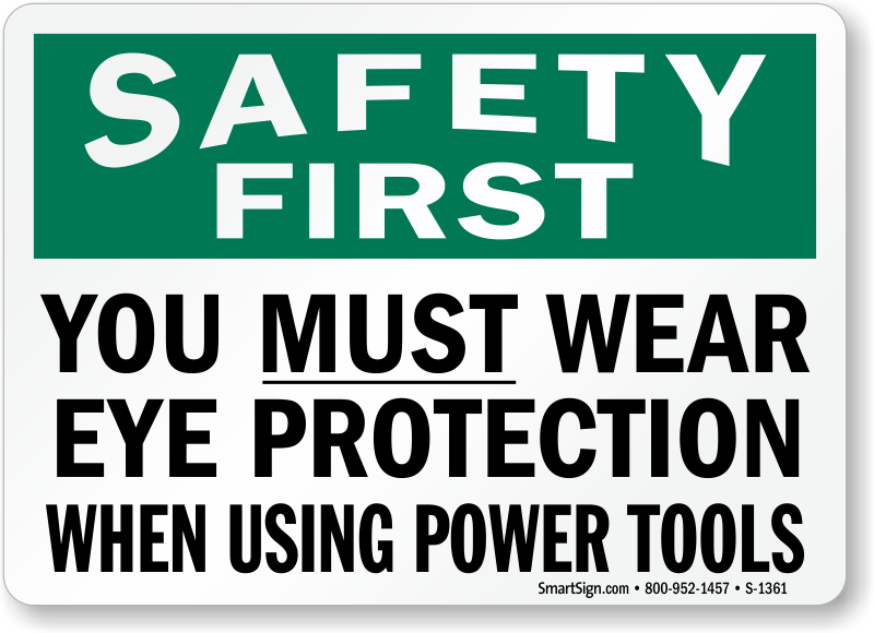 OSHA Safety First Sign: You Must Wear Eye Protection When Using Power Tools