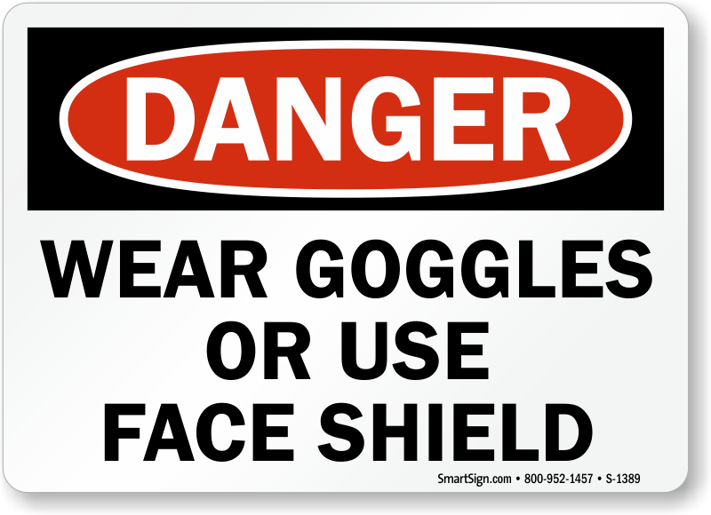 OSHA Danger Faceshield Required Sign: Wear Goggles Or Use Face Shield