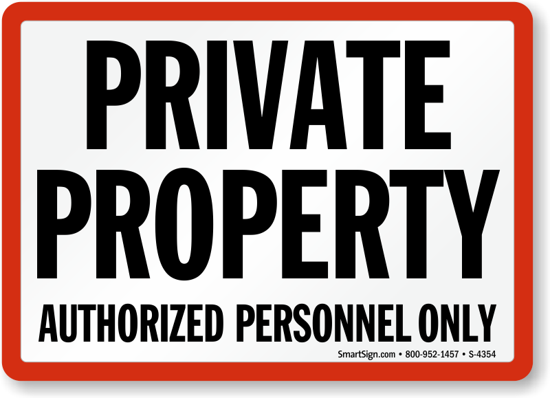 Stop privacy violations. Use a "private property authorized personnel only" sign. Give safety a boost - with a sign.