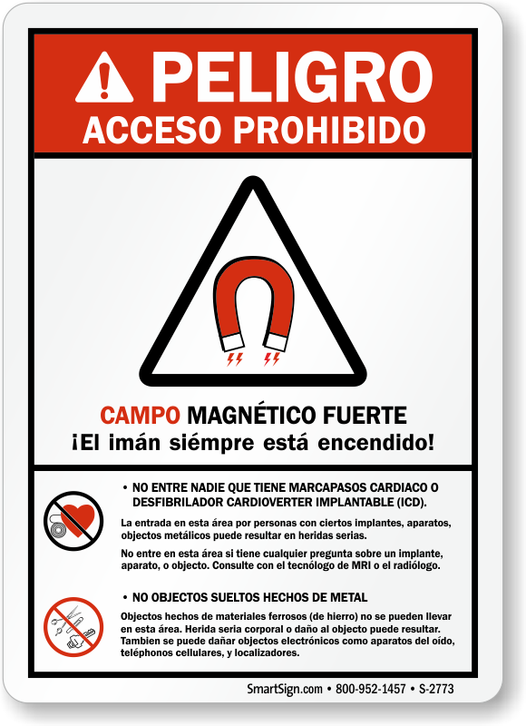 Spanish ANSI Danger Magnetic Field Sign: Peligro Acceso Prohibido Campo Magnetico Fuerte E Iman Siempre Esta Encedido! S-2773