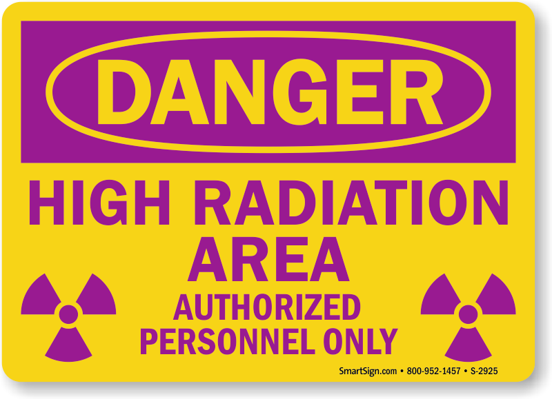 Use a "high radiation area authorized personnel only (with graphic)" sign. A sign helps underscore the value of safety.