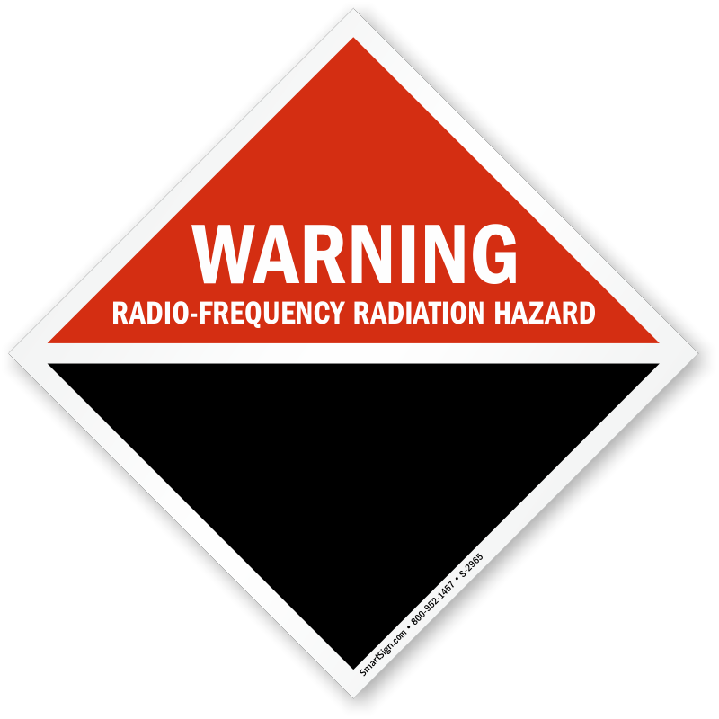 Use a "radio-frequency radiation hazard" sign. Intercept accidents. This sign is compliant with 29 CFR 1910.97.