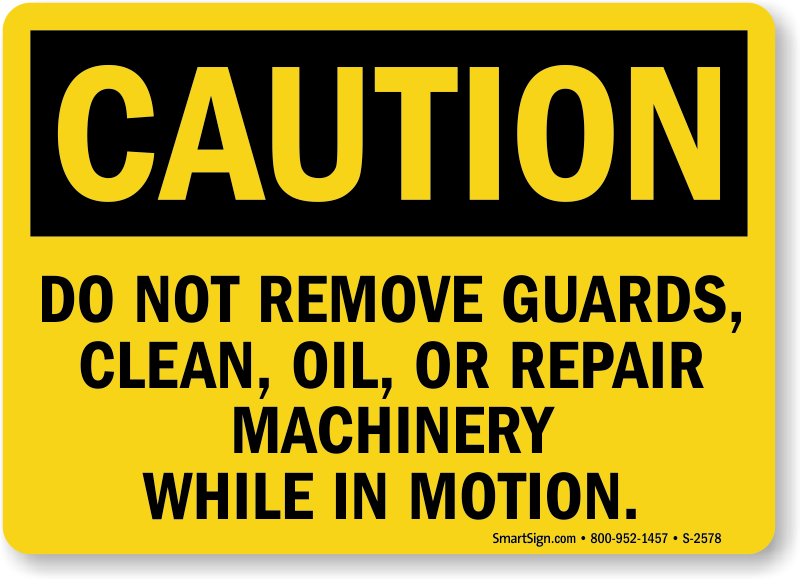 OSHA Caution Sign: Do Not Remove Guards, Clean, Oil, Or Repair Machinery While In Motion S-2578