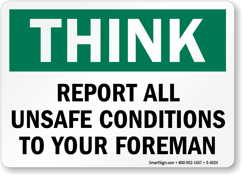Make sure accidents are responded to properly. Use a "report all unsafe conditions to your foreman" sign.
