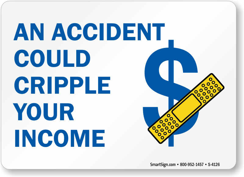 Safety Slogan Sign: An Accident Could Cripple Your Income (with graphic) S-4126