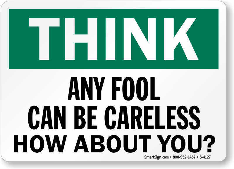 Think Sign: Any Fool Can Be Careless How About You? S-4127