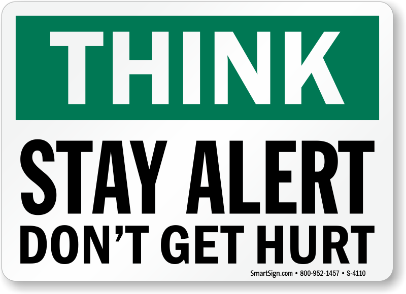 Remind everyone that you care about safety. Use a "stay alert don't get hurt" sign.